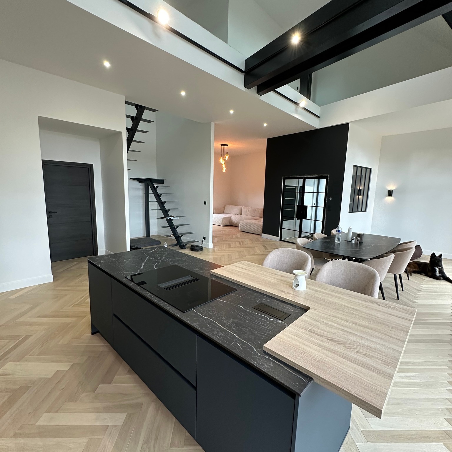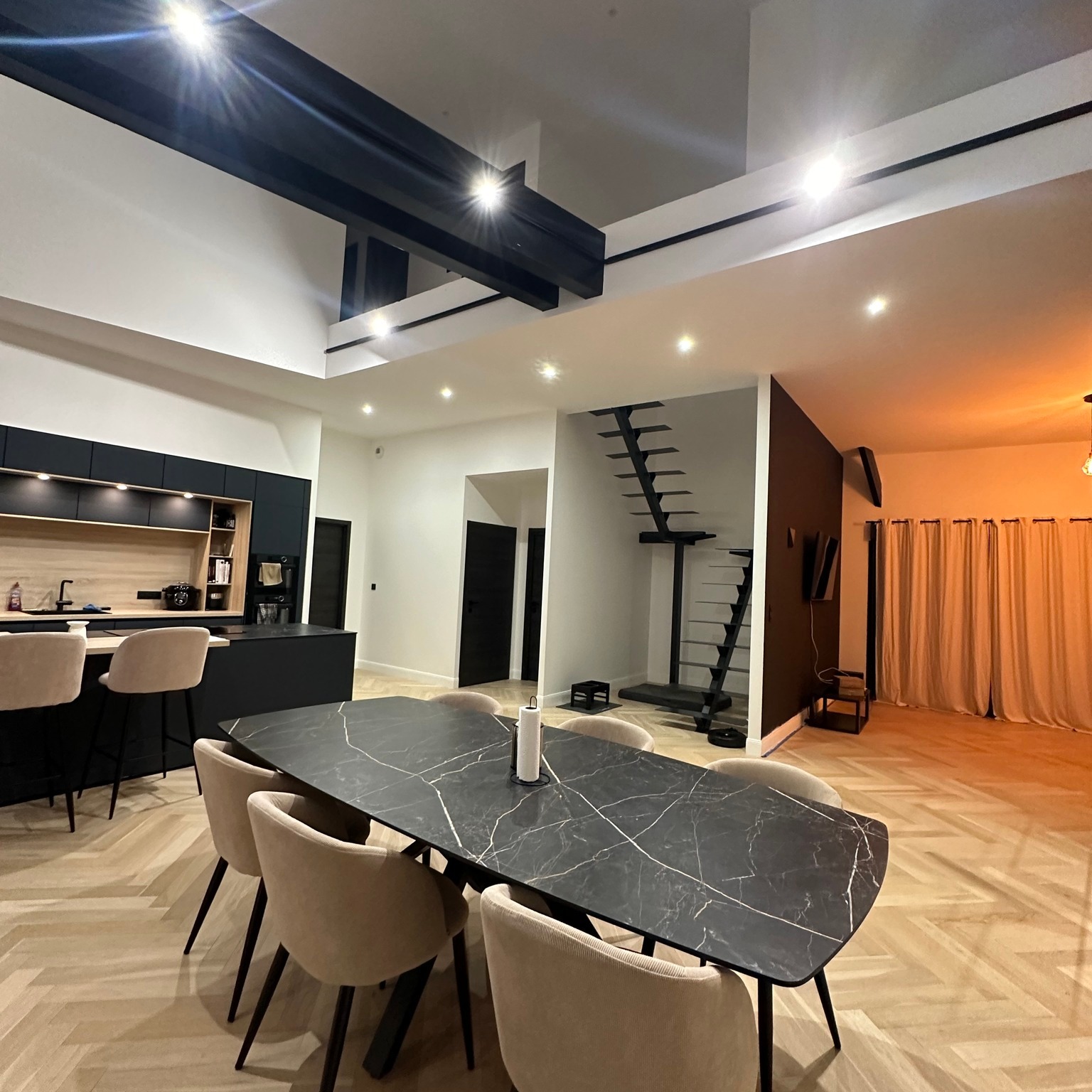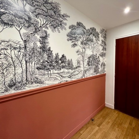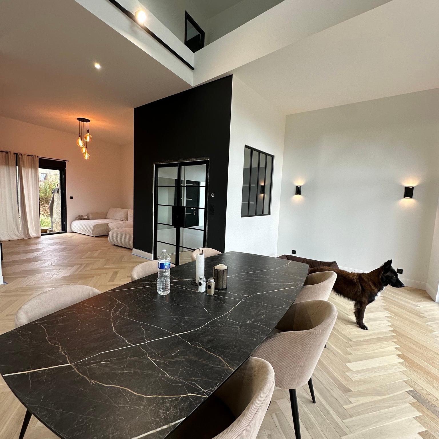 Nous avons réalisé l’ensemble des peintures de cette splendide maison avec ses hauteurs impressionnantes, ses volumes généreux et une décoration absolument dingue !