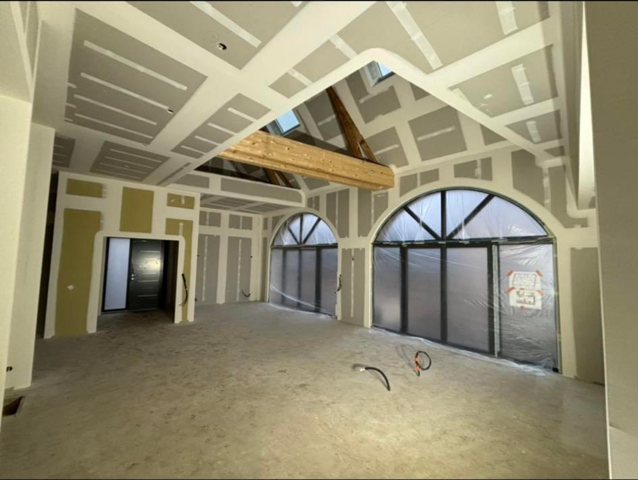 Chantier de maison neuve avec un projet déco sur-mesure.
